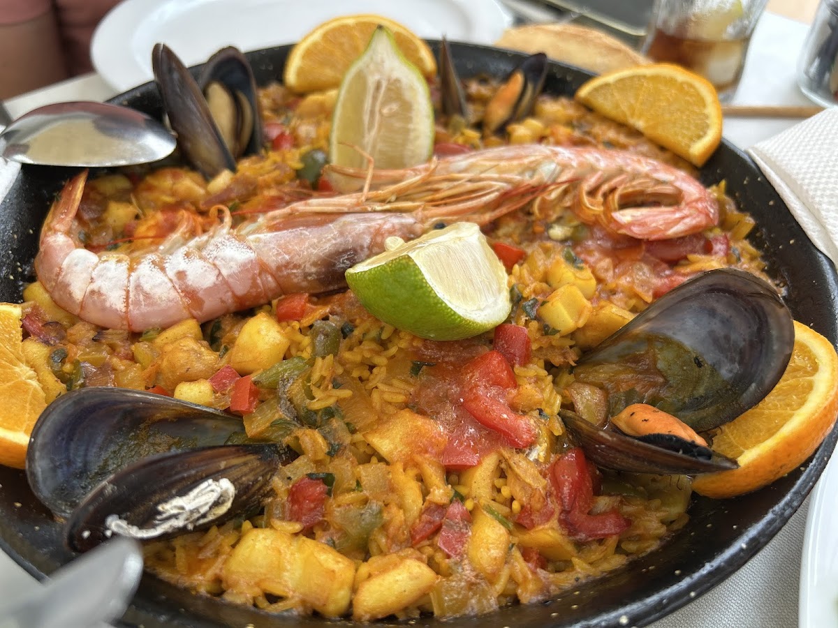 Can't fault this place. Sea food paella was one of the best I ever had, cooked fresh from scratch . Perfect location for a drink too. 1 calamari Starter + 1 beer + 1 Lt of Sangria and a paella for 2 ( wich it's plenty enough tho ) £40 That's A bargain!!! Amazing staffs, amazing food. A+ 5* 100% recommended